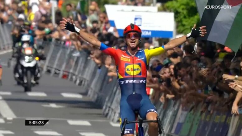 Giulio Ciccone conquista la Clasica San Sebastian 2025. Dopo aver attaccato a una quarantina di chilometri dalla conclusione assieme a Isaac Del Toro (UAE Team Emirates XRG), l’abruzzese di Brecciarola è stato raggiunto da Jan Christen (UAE Team Emirates XRG) nel corso dell’ultima ascesa di giornata, ma il portacolori della Lidl-Trek è stato in grado di staccare sia il messicano che l’elvetico, giungendo solitario al traguardo con 8″ di margine su quest’ultimo. Un rientro in grande stile per Ciccone che era fermo dal Giro d’Italia, quando era stato costretto al ritiro nella tappa di Nova Gorica. Sul podio con lui lo svizzer Jan Christen della USE Emirates XRG e il belga Max Van Gils della Red Bull Bora Hansgrohe.