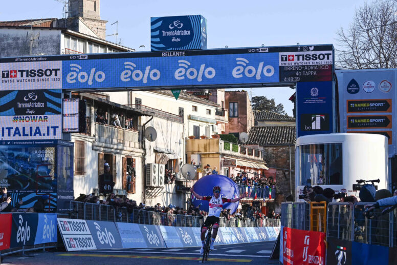 Esattamente come un anno fa Tadej Pogàcar trionfa in Abruzzo alla Tirreno Adriatico. L’anno scorso sullo sterrato di Prati di Tivo vinse tappa e maglia (che ha tenuto fino alla fine); oggi sul traguardo di Bellante altra prova di forza del fenomeno sloveno. Ottima la prova di Giulio Ciccone, che ha chiuso al 5° posto. Per il campione della UAE Emirates quinta vittoria stagionale. Domani i muri di Fermo.