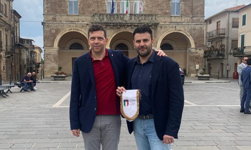 L’iniziativa è in programma domenica 2 giugno; il Coni di Chieti, Massimiliano Milozzi (in foto insieme al sindaco di Rocca Sa Giovanni, Fabio Caravaggio) ha scelto uno dei borghi più suggestivi d’Abruzzo, Rocca San Giovanni che si trasformerà per una intera mattinata (dalle 9 alle 13) in una palestra a cielo aperto.