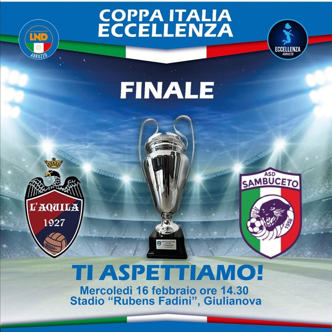 Calcio. Oggi, alle 14,30, L’Aquila e Sambuceto si giocano la Coppa Italia di Eccellenza allo stadio Rubens Fadini di Giulianova. La finalissima è trasmessa in diretta sulla pagina Facebook di Rete 8.