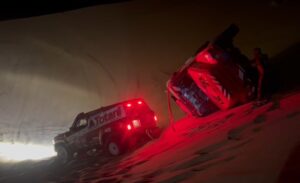 Tutto è avvenuto al buio considerando che la tappa di ieri della Dakar si è protratta ben oltre il tramonto. La straordinaria manovra è stata ripresa con un telefonino e il video da qualche ora sta facendo il giro del web, mentre i Totani a causa di un problema al radiatore di cui si sono accorti ieri notte all’arrivo al bivacco, hanno deciso di giocarsi il jolly e saltare la tappa di oggi e domani – la numero 6 Shubaytah-Shubaitah – per poter riparare la vettura. Trattandosi di una tappa Marathon di due giorni senza alcun tipo di assistenza, infatti, avrebbero rischiato di restare all’interno dell’anello nel bel mezzo del temibile Empty Quarter, il più grande deserto di sabbia del mondo, disabitato e ancora ampiamente inesplorato, e di non poter più proseguire la gara.
