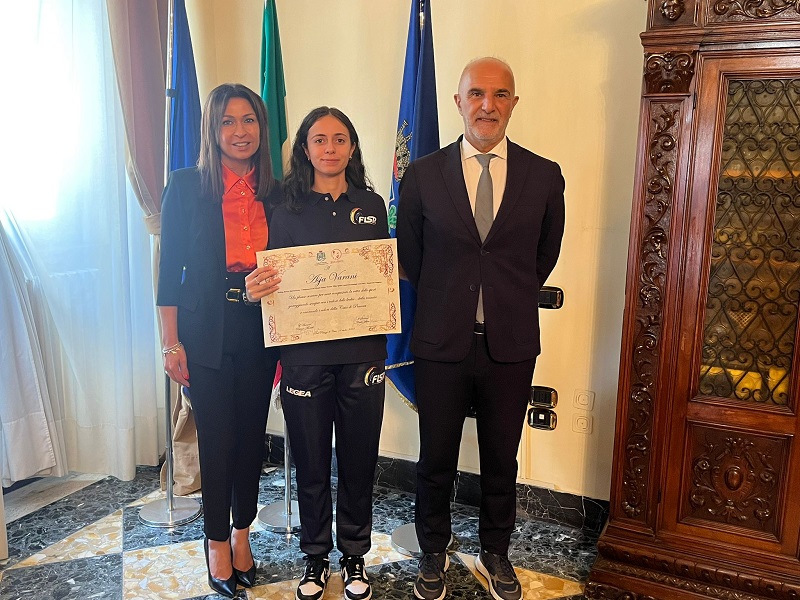 “Rappresenta il volto più bello della gioventù, quella dedita allo sport, ossia al sacrificio, alla passione con lo sguardo verso il futuro. Premiarla quest’oggi, consegnandole la Pergamena ufficiale del Comune di Pescara è semplicemente il nostro ringraziamento per essere la testimonial di una città intera rappresentando un esempio per tantissimi ragazzi della sua età”. Lo ha detto l’assessore allo Sport Patrizia Martelli nel corso della cerimonia di premiazione di Asja Varani, 22 anni, avvenuta quest’oggi in Comune alla presenza del sindaco Carlo Masci.