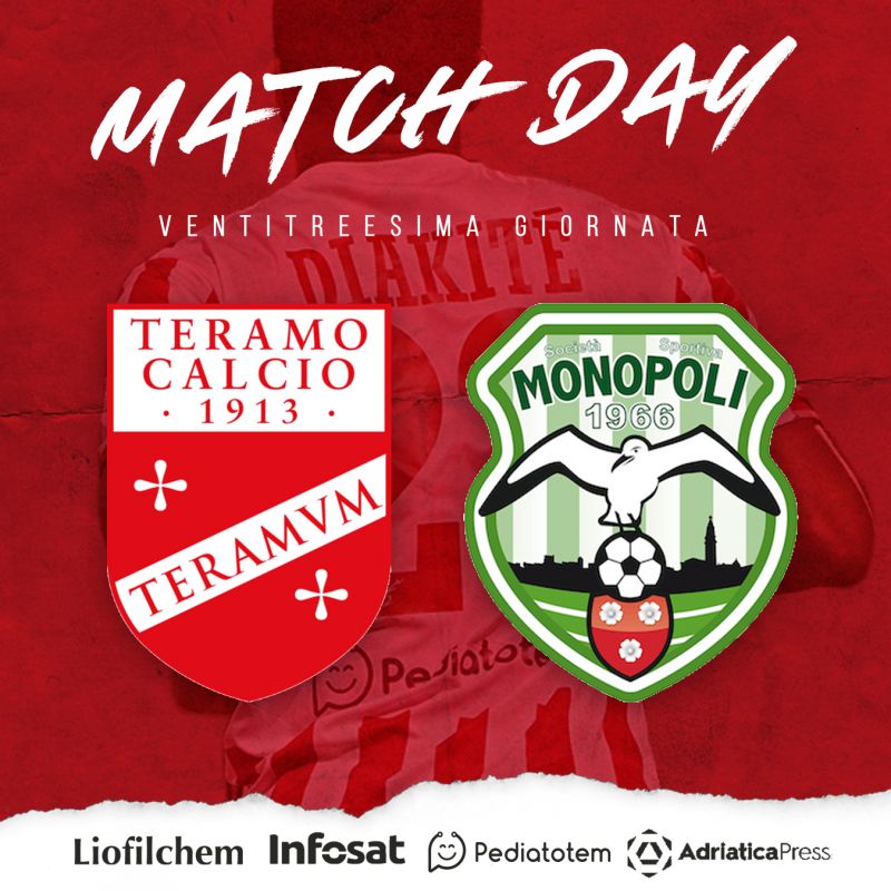 Serie C – Teramo Monopoli. Biancorossi decisi a proseguire la serie utile. Torna Diakite, out Mungo. Altresì indisponibili Birligea, Lasik, Minelli e Valentini. Pugliesi in difficoltà ( 7 punti nelle ultime 9 partite ) e con gli ex Bunino e Paolucci.