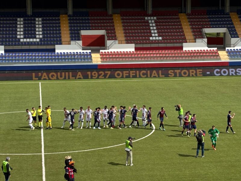 Maggiore possesso di palla dell’Aquila, ma partita finora senza sussulti. L’Aquila colleziona calci d’angolo. E’ il 20′ di gioco.