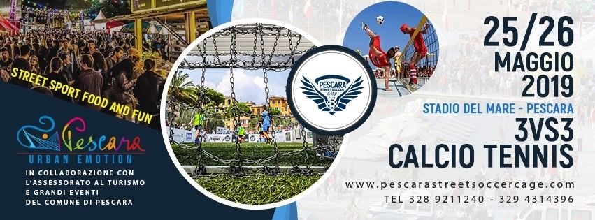 Organizzato dall’Asd Sporting Adriatica 2012 in collaborazione con l’assessorato al Turismo e ai Grandi Eventi del Comune di Pescara, si terrà a ridosso della Nave di Cascella, in cui sorgerà un vero e proprio villaggio sportivo, con l’allestimento di impianti per praticare calcio tennis 3 contro 3 ed un campo dedicato al calcio balilla umano.