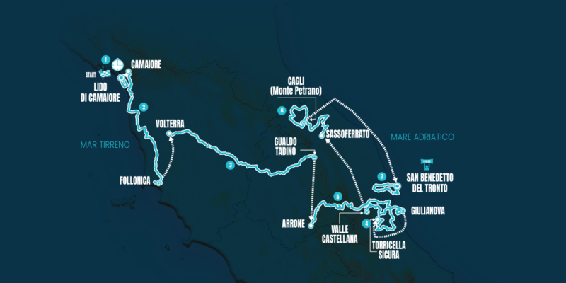 Si sono alzati i veli sulla 59esima edizione della Tirreno-Adriatico, corsa in programma dal 4 al 10 marzo 2024. C’è tanto Abruzzo con la quarta tappa che partirà da Arrone (provincia di Terni) e arriverà a Giulianova (207 Km). La quinta, invece, sarà tutta Abruzzese. Da Torricella Sicura a Valle Castellana passando a San Giacomo (146 Km). Frazione molto dura. La presentazione c’è stata questa mattina a San Benedetto del Tronto, dove si concluderà la corsa dei due mari.