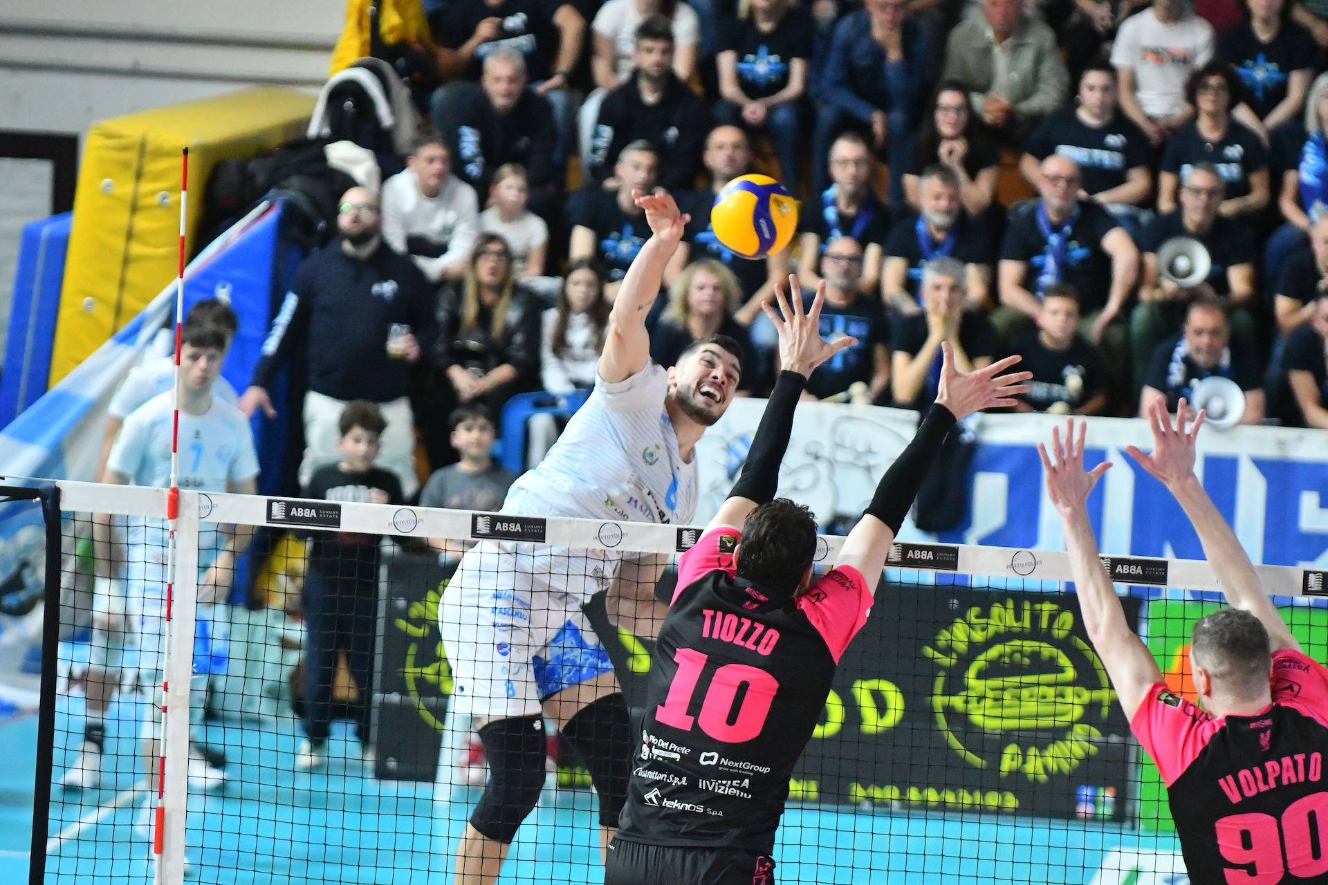Dopo 2h13’ di battaglia sportiva, in un Palavolley ancora una volta tutto esaurito, i biancoazzurri vincono 3-1 (25-21, 25-21, 23-25, 30-28) con l’ennesima grande prestazione collettiva. Il più prolifico di serata fra gli adriatici è il brasiliano Matheus Krauchuk con 18 punti, ma coach Simone Di Tommaso può gioire per la prestazione di prim’ordine di Antonino Suraci (16 punti con due ace), schiacciatore chiamato a sostituire Karli Allik.