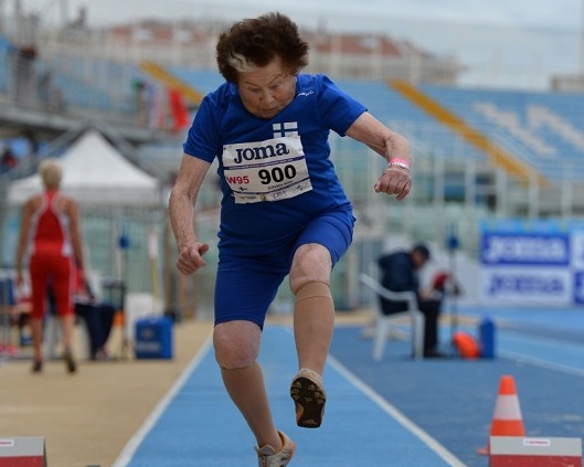 Il salto decisivo che le ha consegnato il titolo è di 97cm. Senni Sopanen, vive nella città di Kuopio nella regione del Savo settentrionale della Finlandia orientale. Nonostante i 96 anni, è una donna straordinaria, con grande dedizione allo sport. Per oltre 50 anni ha lavorato come infermiera ma si è sempre allenata in diverse discipline. Dal canottaggio al baseball, fino ad arrivare al salto in lungo e lancio del martello.