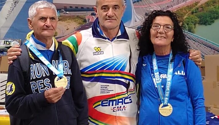 Doppia medaglia d’oro ieri per l’Abruzzo agli Europei Master di Atletica Leggera. A distinguersi tra le varie gare ci ha pensato Venere Serra, all’età di 75 anni e tesserata con l’ASD Runners Pescara. Serra, si è imposta nella Cross Country F75 conquistando la medaglia d’oro. Nella stessa gara, si è aggiudicato la medaglia d’oro nella categoria maschile 65 anni, Domenico Buccella, dell’ASD Runners Pescara, rappresentando l’Italia e superando Spagna e Germania.