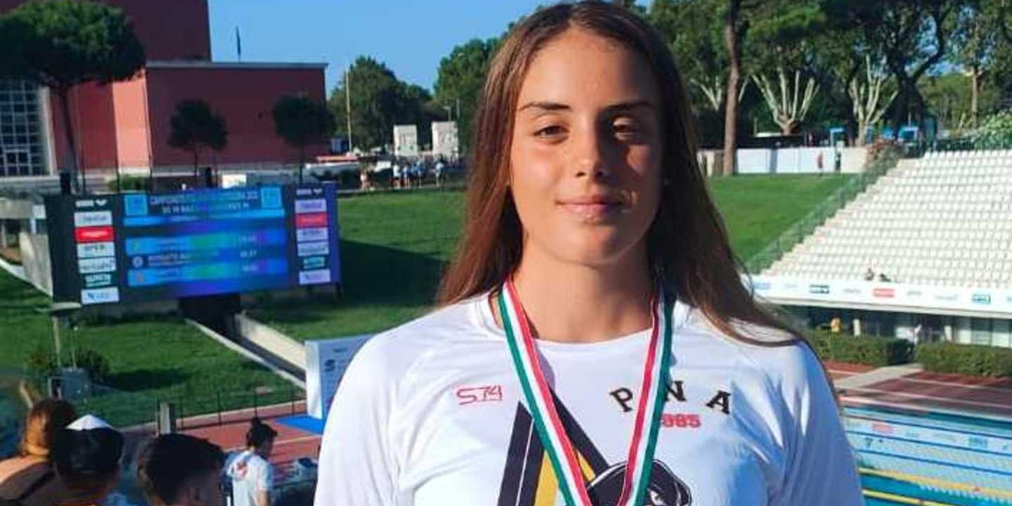 L’avezzanese Giorgia Fabiani, classe 2008, della Pinguino Nuoto, ha conquistato la medaglia d’oro nei 50 rana juniores femminile ai campionati italiani di categoria che si sono conclusi l’8 agosto allo Stadio del Nuoto di Roma. La Fabiani, diventata campionessa d’Italia nella specialità, ha fatto registrare un ottimo risultato, scendendo per la prima volta in carriera sotto i 32″