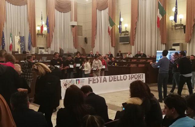 Sala consiliare del comune di Pescara piena per la tradizionale festa provinciale del Coni, manifestazione per premiare atleti, società e dirigenti che si sono distinti nel 2019. Stella d’oro al merito sportivo a Camillo Ciancetta per il ciclismo.