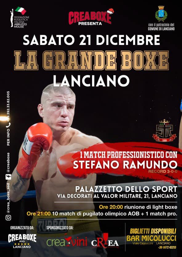 Torna l’appuntamento con la grande boxe al palazzetto dello sport di Lanciano. Stasera alle 20 importante riunione che culminerà con il match clou tra il vastese Stefano Ramundo e il pugile laziale, Lorenzo Calì per i pesi welter, sulla distanza massima di sei riprese.