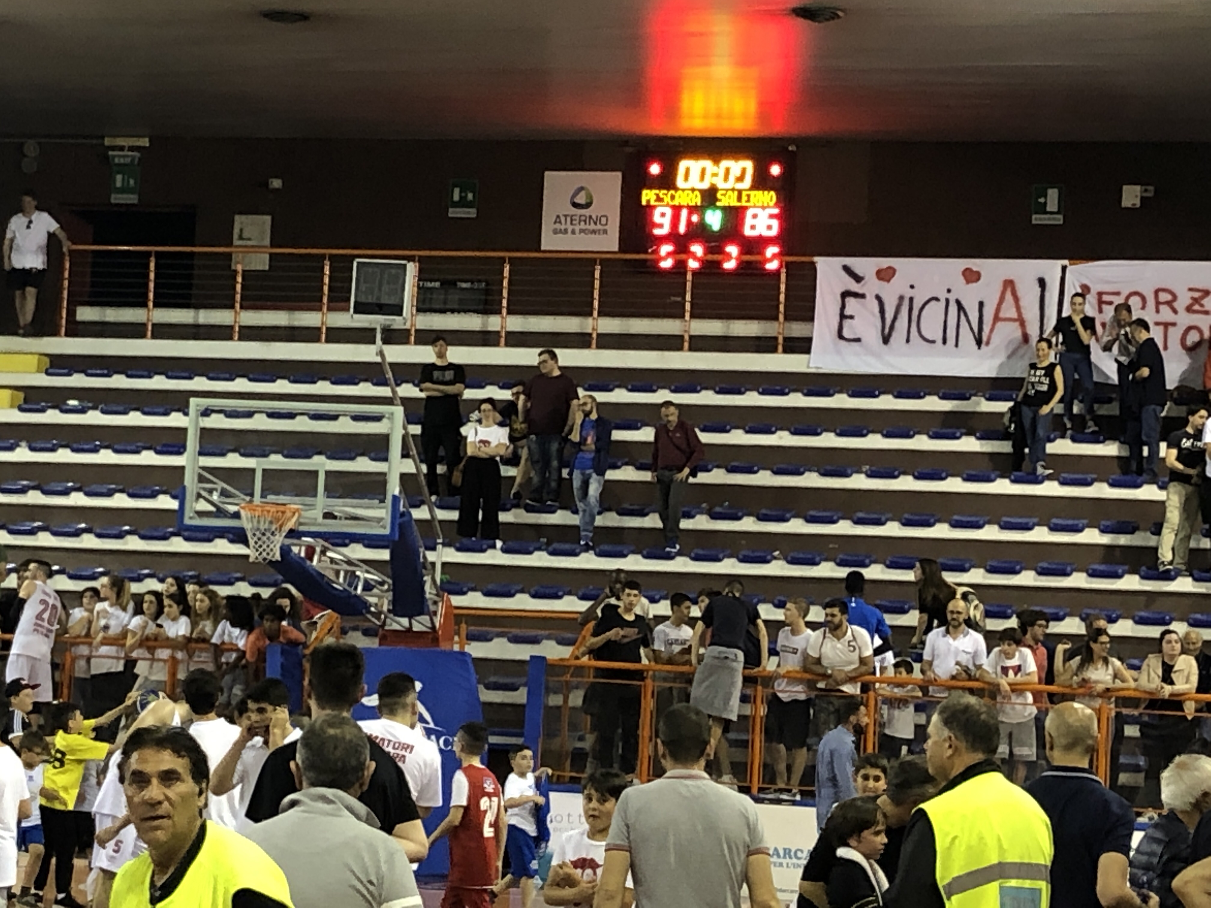 L’impresa è servita: Pescara vince anche gara 4 contro Salerno e vola alle final four di Montecatini. Finisce 91-86 con un secondo quarto spettacolare e un finale punto a punto che ha fatto venire i brividi e ha reso ancor più dolce lo champagne con etichetta biancorossa. E’ il punto più alto della gestione Di Fabio che, dopo la seconda final eight consecutiva di coppa, firma anche la vittoria del campionato. Ma non basta: per la promozione servirà un ulteriore sforzo. Quattro squadre per tre posti in A2 disponibili. Si inizierà il 15 giugno alle 18 45 contro la vincente tra Milano e Omegna. In caso di sconfitta altra possibilità domenica 16 alle 18 con la perdente della seconda semifinale. La partita. Secondo quarto spettacolare, pioggia di triple di Leonzio e Micevic, 30-12 di parziale e +13 ( 49-36) all’intervallo lungo. Salerno ci crede, questa Pescara è cresciuta tanto e nella difficoltà gioca di squadra dando la sensazione di non rischiare mai. Solo super Diomede inventa canestri pazzeschi e il finale all’improvviso diventa punto a punto. Ma la storia è troppo bella per essere rovinata : Caverni fa 2/2 dalla lunetta e Montecatini è pronta ad accogliere Pescara. Che vuole la A.
