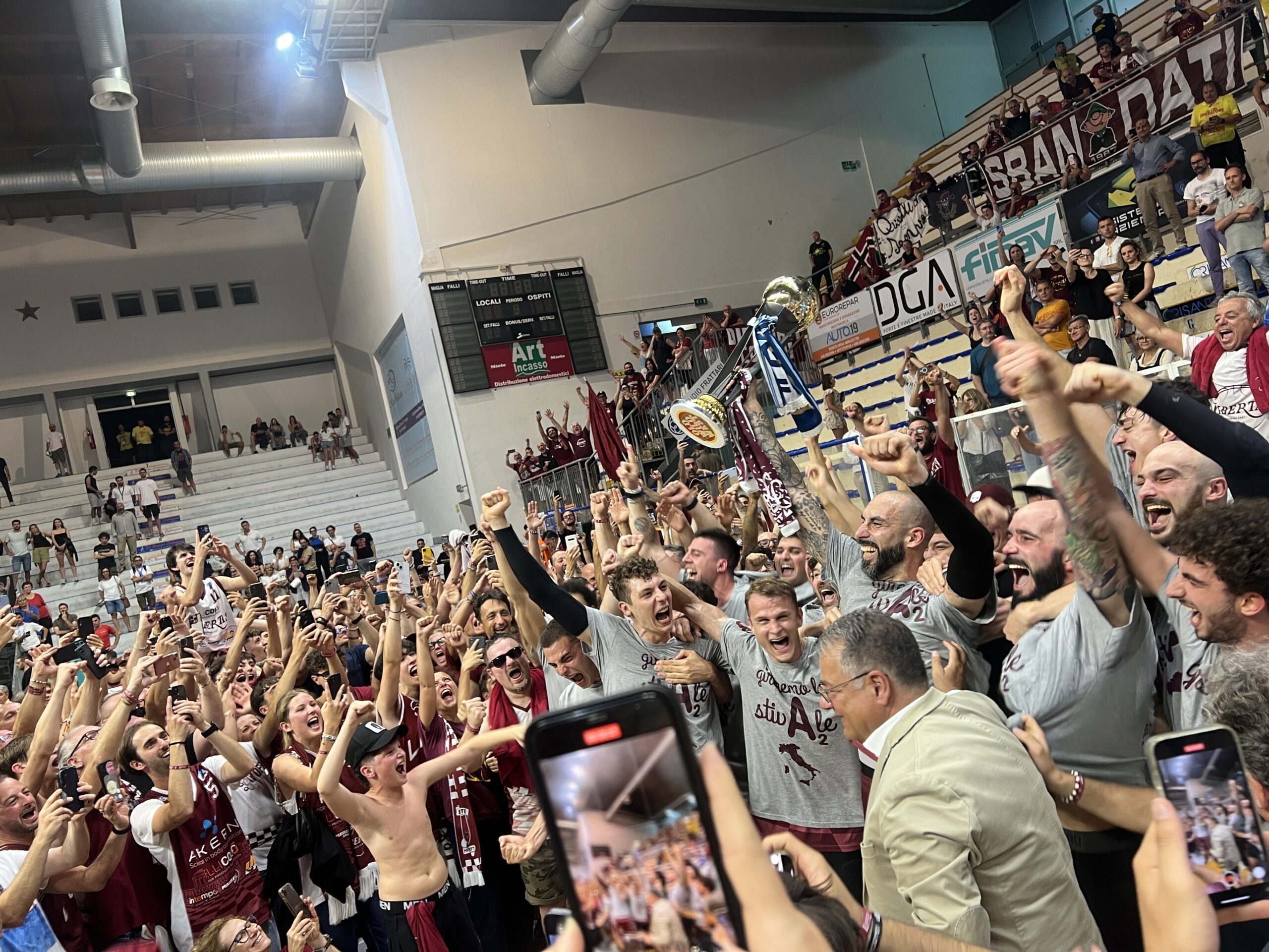 Livorno batte Roseto davanti a 4.400 spettatori e può festeggiare la A2. Pronti via e la Liofilchem scappa via (7-0) ma gli ospiti sanno reagire e spinti dalle triple di Allinei ( 5/5 all’intervallo) rientrano subito in partita e sorpassano. Poi ci pensa Saccagi con una striscia impressionante dall’arco a firmare il break decisivo. Nonostante la sconfitta il pubblico di casa è da applausi. 15 punti per Mantzaris in casa Roseto, 20 per Allinei tra i toscani.