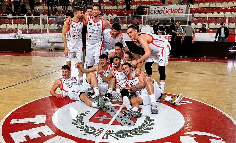 Meritata e messa in atto con la giusta dose di determinazione e caparbietà. Nessuno avrebbe scommesso prima della palla a due sulla vittoria 66-50 ottenuta dai biancorossi contro un avversario della qualità di Ruvo di Puglia. E invece l’obiettivo è stato centrato grazie a una prova superlativa dei biancorossi. Bravi a chiudere l’area con efficacia, senza andare sotto nel confronto con la maggiore fisicità degli avversari. Bravi a controllare i rimbalzi, nonostante i tanti centimetri e chili in più a disposizione dei lunghi della Tecnoswitch. Bravi ad alzare l’asticella del gioco nell’ultimo e decisivo quarto, con un parziale 22-5 che ha permesso di chiudere la gara con sorprendente autorevolezza. Bravi a vincere una sfida proibitiva quando mancano due giornate al termine della stagione regolare, mettendo così in cascina due punti fondamentali in classifica.