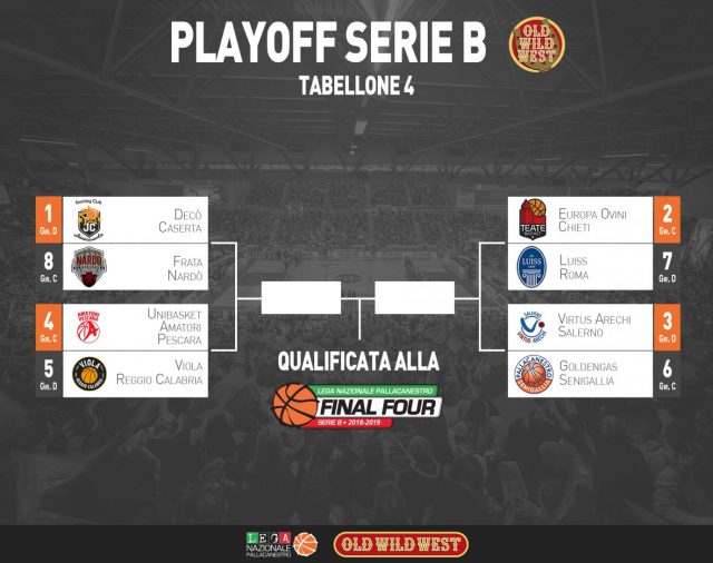 Coppia abruzzese per i playoff promozione con Teate e Amatori che hanno chiuso rispettivamente al 2^ e al 4^ posto il girone C della serie B. La squadra teatina guidata da Piero Coen se la vedrà nei quarti di finale con la Luiss Roma, formazione del girone D classificatasi al 7° posto; dallo stesso girone i pescaresi di coach Stefano Rajola hanno pescato Reggio Calabria, giunta 5°. Serie al maglio delle tre partite col vantaggio dell’eventuale bella in casa. Gli orari: l’Europa Ovini giocherà domenica alle 21 al PalaTricalle (gara 2 a campi invertiti giovedì 2 maggio); l’Amatori alle 18 al PalaElettra (gara 2 a Reggio Calabria anticipata a mercoledì 1° maggio alle 18). In caso di passaggio del turno, Chieti affronterà in semifinale la vincete di Salerno-Senigallia; Pescara se la vedrà con la vincente di Caserta -Nardò. Le abruzzesi si avvicinano a questi playoff con grandi ambizioni.