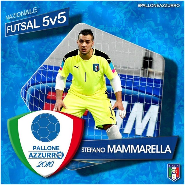 Dopo avere vinto per tre volte il “Guanto d’Oro” (riconoscimento per decretare il portiere di calcio a 5 più forte del mondo), i tifosi del Futsal hanno votato Stefano Mammarella come miglior azzurro del calcio a 5 del 2016. Mammarella, attualmente fermo per un infortunio al piede, è stato scelto dal 31% dei votanti, precedendo Alex Merlim (vincitore dell’edizione 2015, che ha ottenuto il 29% delle preferenze). Il sondaggio si è tenuto su www.vivoazzurro.it, sito FIGC ufficiale delle Nazionali Italiane di Calcio, ed ha coinvolto quasi 15.000 utenti, che hanno votato i 20 candidati (5 per ogni nazionale), scelti dai giornalisti della Redazione di RaiSport, al seguito delle squadre azzurre durante il 2016. Gli altri vincitori che, come Mammarella, saranno premiati nel primo raduno azzurro del 2017, sono Gianluigi Buffon (calcio), Melania Gabbiadini (calcio femminile) e Gabriele Gori (beach soccer). Davvero ancora complimenti per il quasi 32enne portierone.