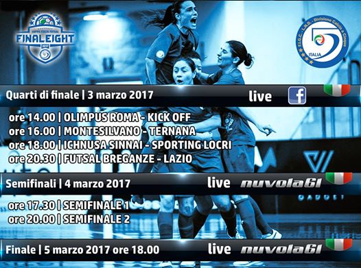 Si è svolto a Roma, il sorteggio della Final Eight di Coppa Italia di Serie A Elite femminile che si disputerà a Bassano del Grappa dal 3 al 5 marzo. Tra le 8 squadre figura anche il Montesilvano che debutterà alle 16.00 contro la Ternana. Semifinali e finale saranno trasmesse in diretta tv, in chiaro e in tutta Italia, su Nuvola 61 (canale 61 del digitale terrestre), mentre per i quarti di finale sarà garantita la diretta streaming.