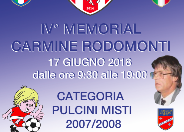 Lo stadio Bonolis di Teramo ospiterà domenica la quarta edizione del Memorial “Carmine Rodomonti”, kermesse riservata alla Categoria Pulcini. Presenti 12 squadre.
