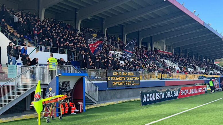 Un derby spartiacque quello di domenica tra L’Aquila 1927 e Giulianova, domenica allo stadio Gran Sasso. La settimana appena trascorsa in casa rossoblù é stata di grande intensità. La formazione di mister Pochesci, ancora squalificato, vuole riscattarsi subito davanti al pubblico amico dopo la sconfitta rimediata a Macerata. Dovrebbero essere tutti a disposizione e non dovrebbero esserci novità nell’undici iniziale. Sarà un derby con un’ottima cornice di pubblico. In casa L’Aquila staccati più di 1600 biglietti con la tribuna popolare in esaurimento, 644 quelli concessi ai giuliesi. Sarà giornata rossoblù, non sono validi gli abbonamenti.