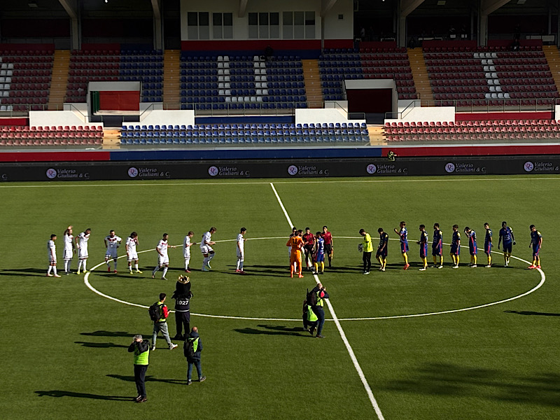 Tegola subito dopo per i rossoblù perché il vice allenatore Emilio Coraggio, con Pochesci ancora squalificato, è costretto ad effettuare un cambio, via Tavcar per problemi fisici, dentro Luka Tomas.