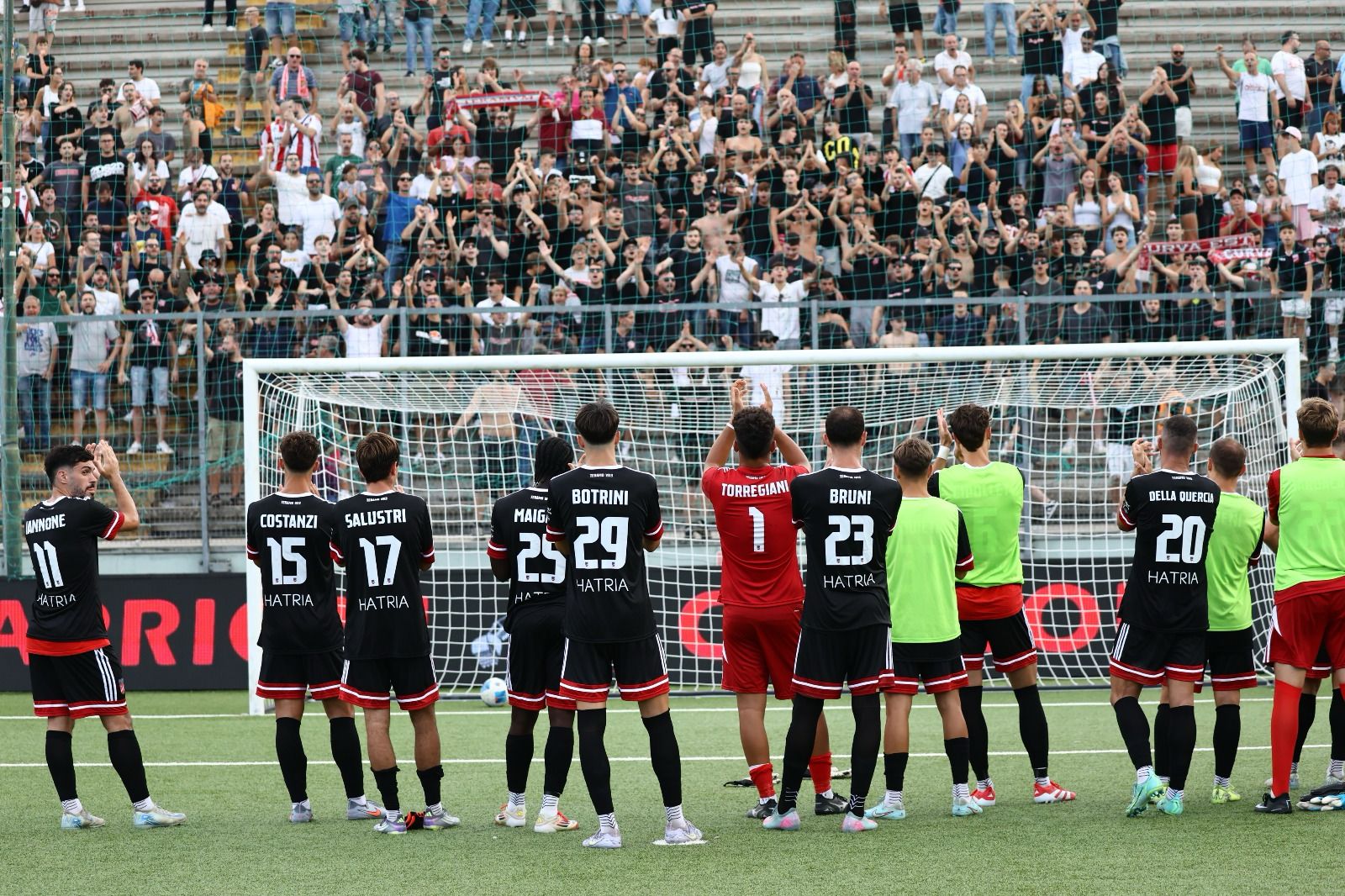 Dopo cinque minuti di recupero, l’arbitro Domenico Mascolo della sezione di Castellammare di Stabia fischia la fine: il Teramo può festeggiare la prima vittoria stagionale, arrivata con merito dopo due gol annullati, due legni colpiti e tante palle-gol costruite.