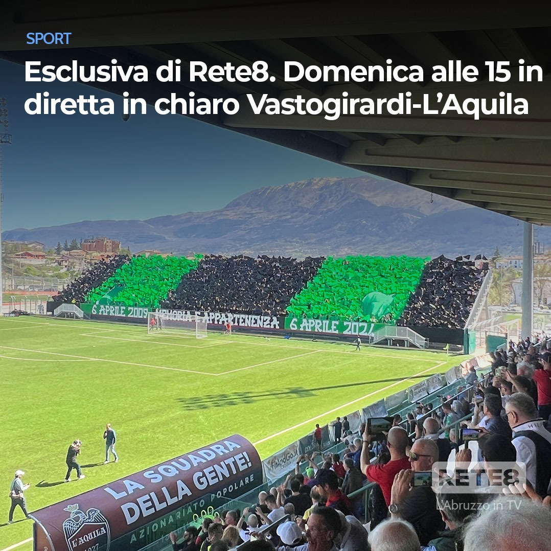 Domenica altra grande esclusiva di Rete8. In diretta in chiaro alle 15 il match tra Vastogirardi e L’Aquila. I rossoblu sono al secondo posto nel girone F di serie D e sognano la C.