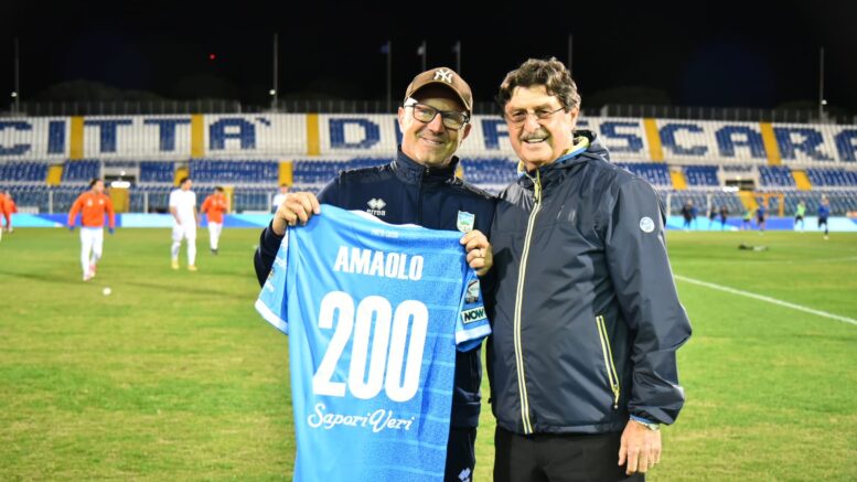 La squadra di Amaolo, premiato prima del fischio d’inizio dal presidente Brocco per le sue 200 panchine con il Pineto, continua a volare in piena zona play-off, con 17 punti, solamente tre in meno dei cugini del Pescara.
