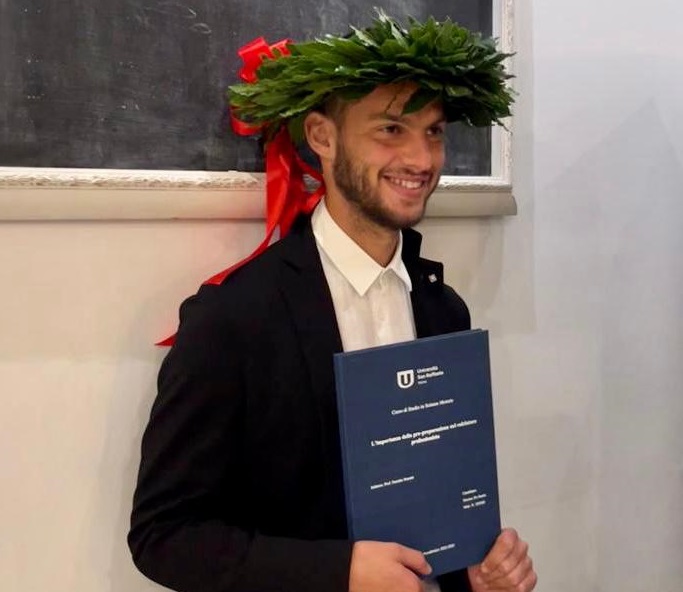 Relatore il Professor Ferretto Ferretti. La tesi di De Santis parlava, naturalmente, di calcio: “L’importanza della pre-preparazione nel calciatore professionista”.