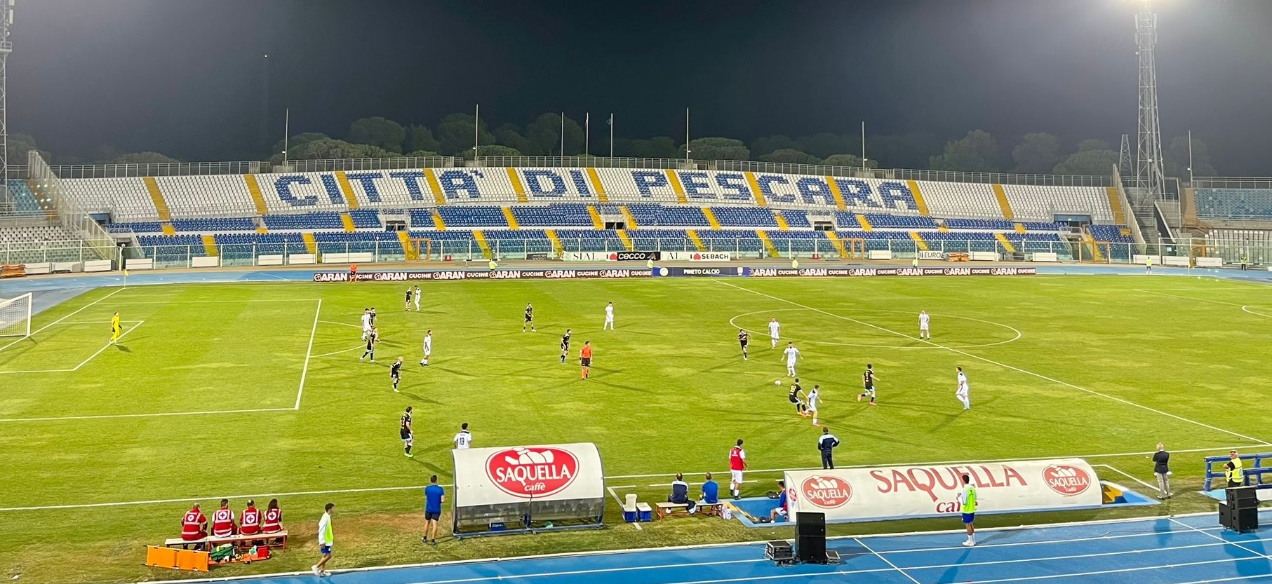 Curiosità: in occasione della settimana dedicata a Gabriele d’Annunzio, il Pineto ha voluto omaggiare la città di Pescara e il Vate facendo passare sui led a bordo campo l’incipit della poesia “La pioggia nel pineto”.