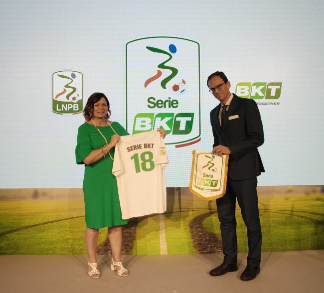 E’ stato ufficializzato questa mattina a Milano il nuovo accordo siglato tra la Lega Nazionale Professionisti B e BKT, big player nel mercato degli pneumatici Off-Highway, da oggi Title Sponsor del Campionato Serie B per le prossime tre stagioni. “Serie BKT” sarà il nuovo nome della Serie B, rappresentato da un logo che unisce BKT e Lega B, che accompagnerà le squadre, i Club e le tifoserie, a partire dalle 42 giornate, e dai Playoff e Playout, della prossima stagione in 22 campi da gioco italiani.