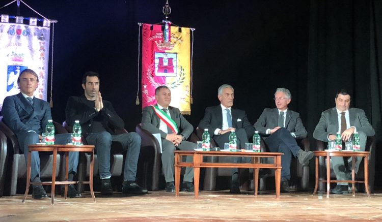 Castel di Sangro – Il Ct dell’Italia Roberto Mancini ha applaudito il conferimento a Gabriele Gravina della cittadinanza onoraria. Cinema Italia stracolmo per la cerimonia e il presidente della FIGC si commuove