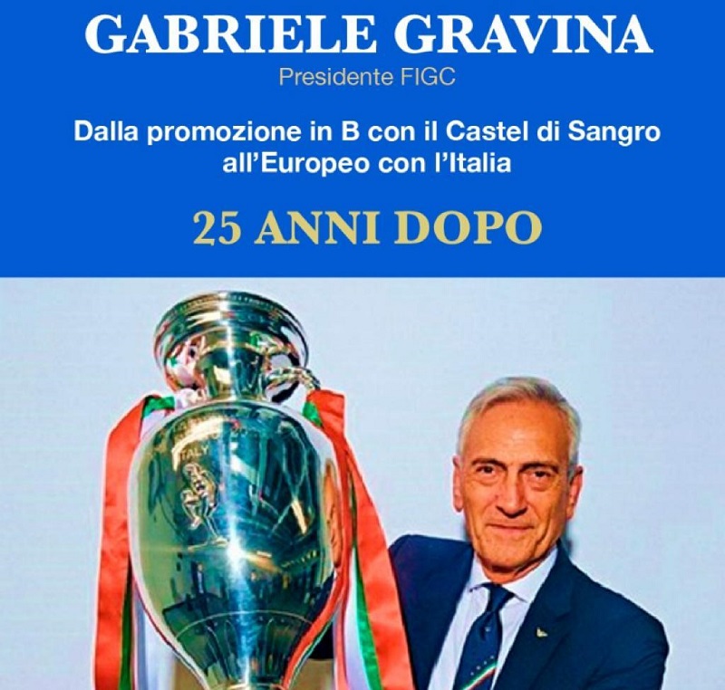 Come svelato nei giorni scorsi dal primo cittadino di Castel di Sangro, Angelo Caruso, si parte da quella partita di venticinque anni fa quando il Castel di Sangro, battendo ai rigori l’Ascoli nello spareggio di Foggia, fu promossa in serie B. Si ripercorrerà quella vittoria che rappresentò una pagina importante della storia della comunità locale e poi si arriverà, passaggio dopo passaggio e rigore dopo rigore, fino alla vittoria della nazionale italiana di calcio al campionato Europeo. In entrambi questi eventi, unici nel loro genere, protagonista è stato Gravina, all’epoca presidente della squadra giallo-rossa e oggi della Figc.
