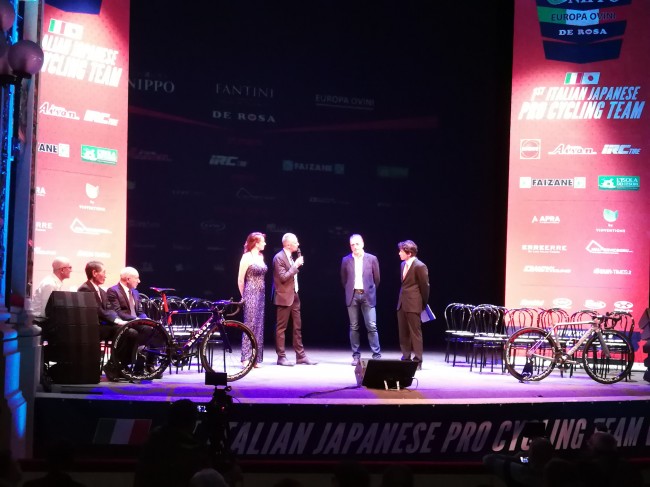Nel suggestivo scenario del teatro Marrucino di Chieti si è alzato ieri sera il sipario sulla Nippo Vini Fantini Europa Ovini, il team Professional nato da un progetto fortemente voluto dagli imprenditori Valentino Sciotti e Gabriele Marchesani. Alla serata sono intervenuti ospiti provenienti dal mondo dello sport come i designatori arbitrali Nicola Rizzoli (serie A) ed Emidio Morganti (serie B) e la campionessa di ginnastica Fabrizia D’Ottavio; non sono mancate le autorità politiche ed istituzionali. Ma soprattutto il teatro era pieno di appassionati desiderosi di conoscere il team professionistico (19 corridori) e quello Under 23 (8 ciclisti). Il sogno del team è quello di partecipare al Goro d’Italia con una delle 4 wild card che la RCS consegnerà alle squadre che non essendo Pro Tour non hanno diritto a partecipare. Il 17 gennaio si saprà.
