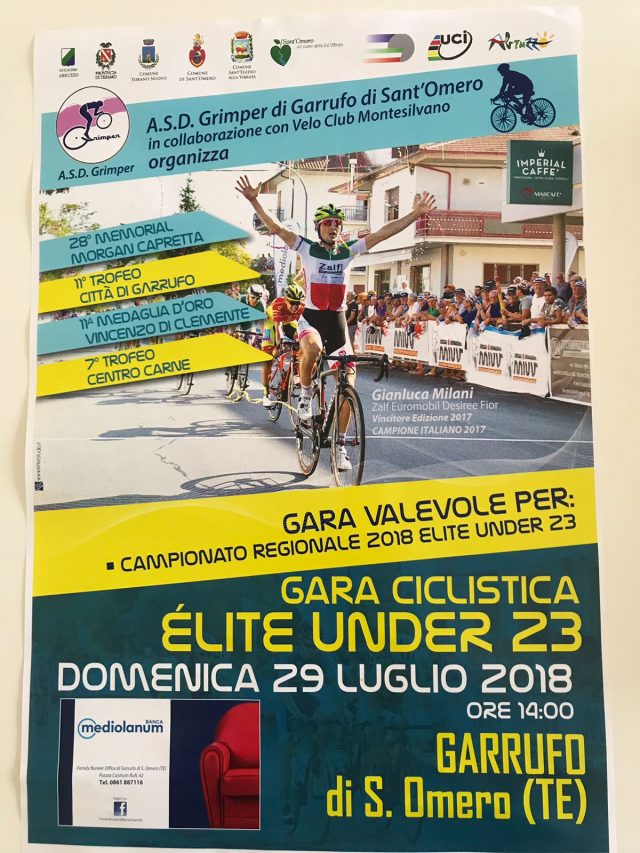 Al via domani sulle strade di Garrufo di Sant’Omero e della Val Vibrata, la 28° edizione del Memorial Morgan Capretta. CorsaElite e Under 23 valida per il titolo regionale.