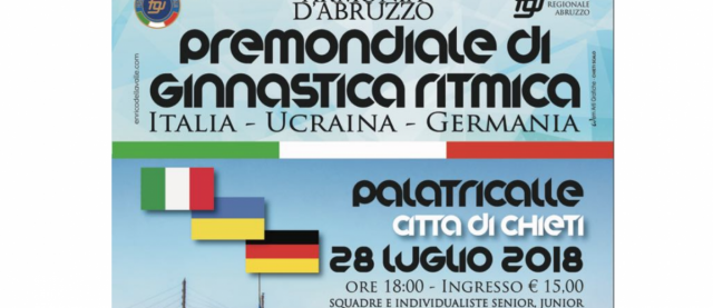 Si svolgerà domani al PalaTricalle di Chieti il premondiale di ginnastica ritmica con Italia, Germania e Ucraina. La kermesse inizierà alle 18.00.
