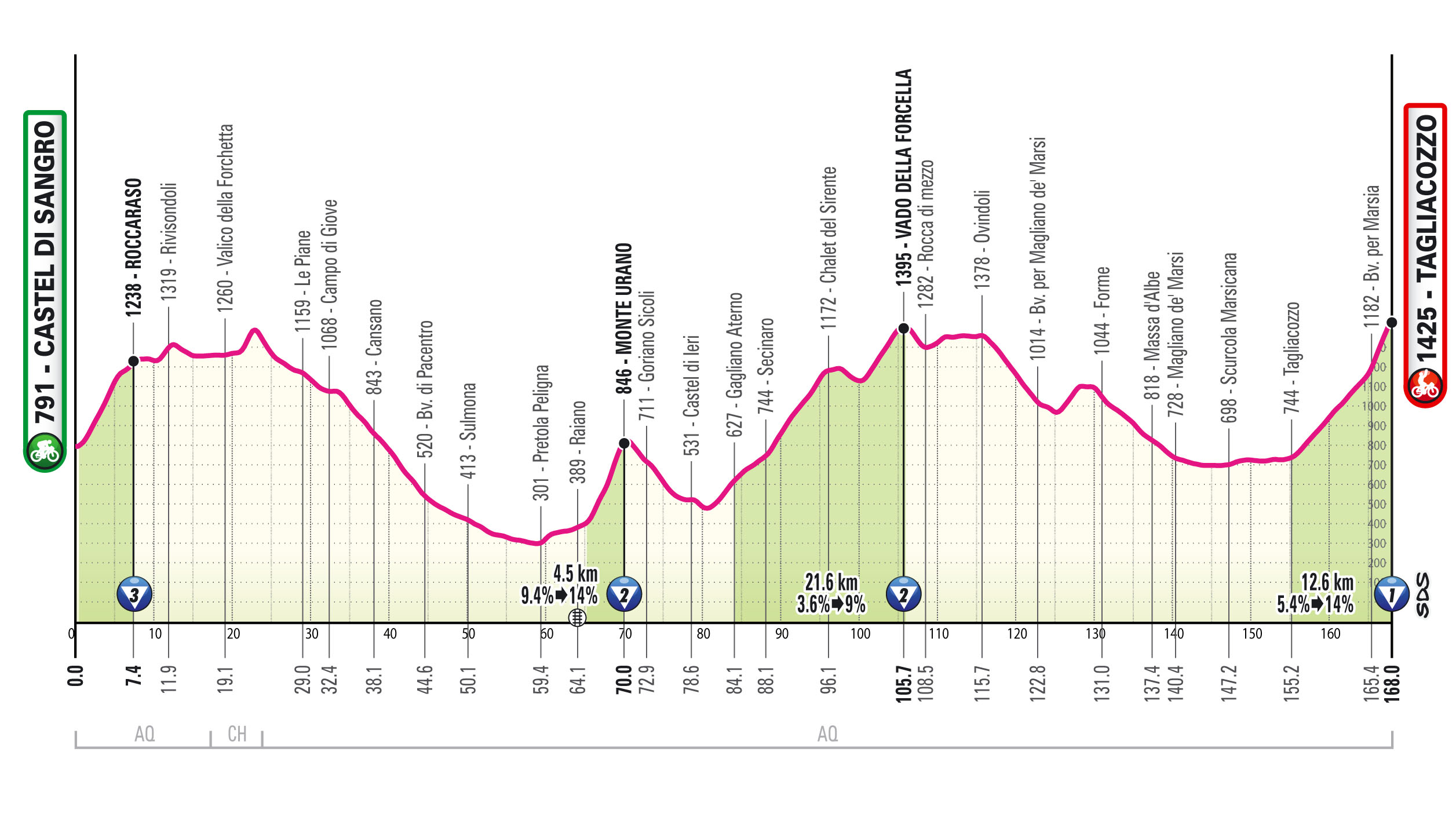 Presentato a Roma all’Auditorium Parco della musica il Giro d’Italia 2025. Il via il 9 maggio dall’Albania, in Abruzzo si arriverà venerdì 16 con la Castel di Sangro Napoli. Tappa di 168 km con 3.500 di dislivello e con l’arrivo in salita inedito di Marsia. Prima breve salita verso Roccaraso e il valico della Forchetta poi Campo di Giove, Sulmona, Pratola e la dura salita di Monte Urano. 4.5 km al 9% con punte al 14. Poi i corridori andranno verso Secinaro e il Valico della Focella prima di arrivare all’Altopiano delle Rocche. Si svolterà a sinistra direzione Ovindoli poi discesa verso Magliano e Tagliacozzo. Dal paese inizierà la salita finale: 11 km leggeri al 4/5% prima degli ultimi 3 molto duri al 12%. Il giorno successivo ripartenza da Giulianova direzione Castelraimondo. Presenti per l’Abruzzo il presidente della Regione Marco Marsilio, il presidente della provincia dell’Aquila Angelo Caruso ( e sindaco di Castel di Sangro) e i sindaci di Tagliacozzo e Giulianova Vincenzo Giovagnorio e Jwan Costantini. “Ancora una volta l’Abruzzo è protagonista – ha detto Marsilio – e avremo una tappa che da Castel di Sangro toccherà tante località della nostra regione prima di far scoprire a tutti Marsia. E ripartiremo da Giulianova. Sarà una prima volta al Giro ed era un impegno preso con Costantini e che andava mantenuto dopo l’ottimo lavoro fatto alla Tirreno Adriatico”.