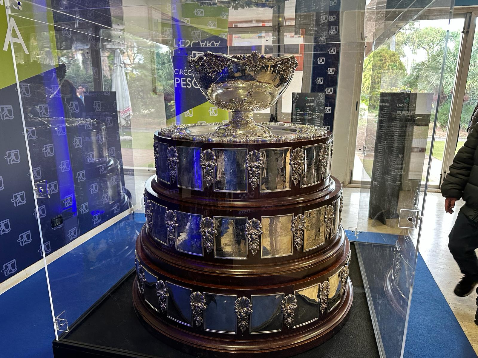 Eccola qui sua maestà l’insalatiera, in esposizione da ieri pomeriggio fino a domani presso il Circolo Tennis di Pescara e da giovedì pomeriggio a Palazzo Margherita a L’Aquila. Ci sono voluti 47 anni per riconquistare la prestigiosa Coppa Davis, riconoscimento più ambito nelle competizioni a squadre riservate alle Nazionali, una sorta di Coppa del Mondo del tennis. Dai successi di Panatta, Bertolucci, Barazzutti e Zugarelli in Cile, a quelli di Arnaldi, Sinner e Sonego a Malaga lo scorso novembre. Un evento talmente straordinario da spingere la Federazione ad allestire un vero e proprio Tour della Coppa in giro per l’Italia. In Abruzzo è stato scelto, come unico Circolo, quello di Pescara dove da ieri curiosi e soprattutto molte scolaresche, questa mattina presenti gli studenti dell’Istituto Alberghiero “F. De Cecco”, inseriti in uno specifico progetto d’inclusione, possono ammirare da vicino il suggestivo trofeo: