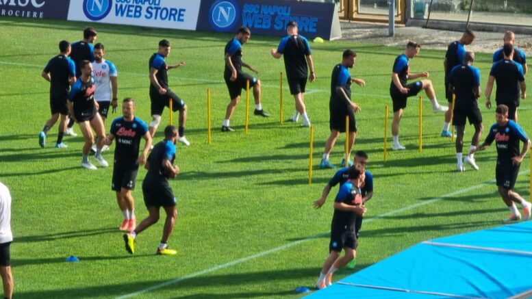 I giocatori del Napoli arrivano poco dopo mezzogiorno all’hotel di Rivisondoli per il ritiro abruzzese e scoppia l’entusiasmo dei tifosi