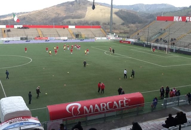85′ Teramo vicino al pari con un colpo di test sotto misura di Sansovini che da posizione favorevole non inquadra la porta.