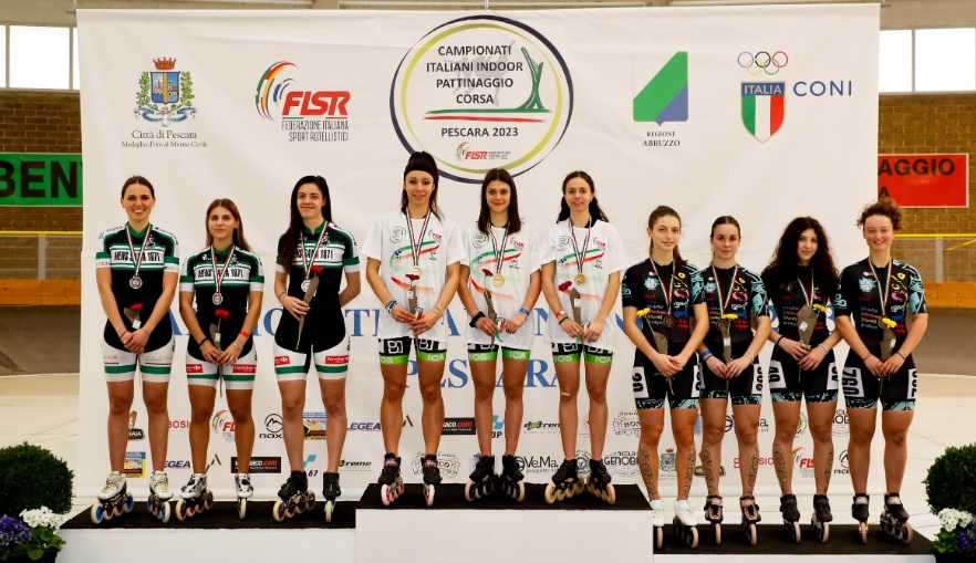 Per i colori abruzzesi protagonisti la teramana Rolling Pattinatori Bosica con la sua atleta di punta, Asja Varani. Arrivano infatti dalla società di Martinsicuro i migliori risultati dei Campionati 2023, e non solo grazie alla campionessa europea. È comunque la pescarese a confermarsi leader della velocità, conquistando le prove Senior del giro atleti contrapposti femminile e della 3000 m americana femminile, quest’ultima con le compagne di staffetta, Anastasia Federici e Matilde Biondi. I due titoli assoluti sono impreziositi dalla Varani anche grazie al secondo posto nella 1000 m sprint.