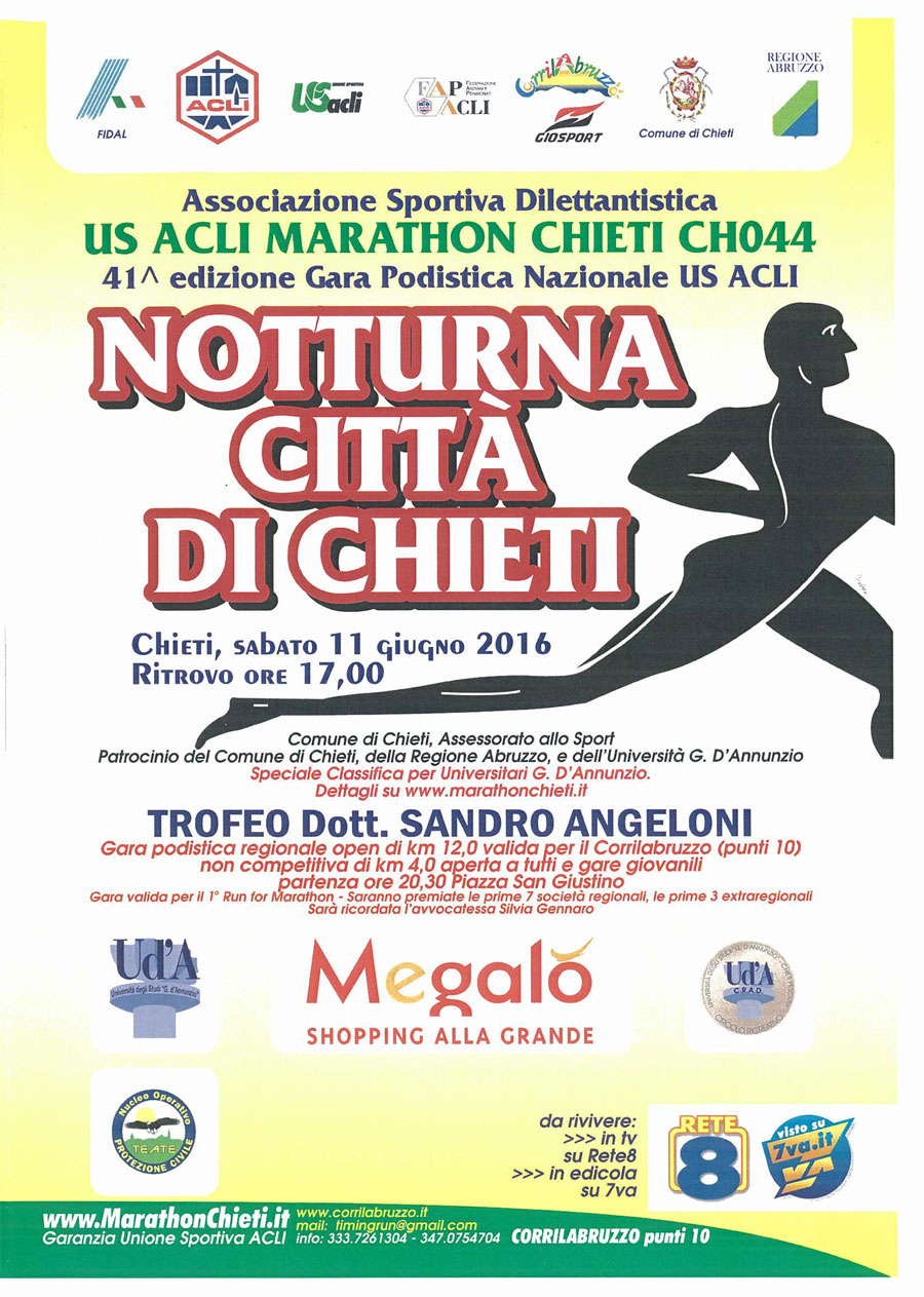 Podismo – Torna la “Notturna Città di Chieti”. Tante le novità proposte dagli organizzatori, l’Acli Marathon.