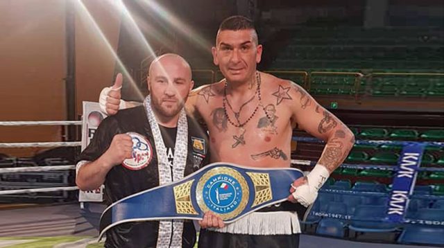Mentre erano in corso i Campionati Italiani Elite a Pescara, un pugile abruzzese vinceva il titolo italiano professionisti dei pesi massimi. Ieri sera sul ring di Montichiari, l’avezzanese Ivan Di Berardino ha battuto per ko alla 2^ ripresa il triestino Fabio Tuiach, riportando in Abruzzo dopo 29 anni il tricolore dei pesi massimi. Ivan Di Berardino 37 anni deve la sua carriera, iniziata prestissimo, al maestro Ivan Fiorletta (i due sono nella foto che vedete). Da dilettante diventa per 3 volte campione regionale di pesi massimi. Debutta nel mondo professionistico nel 2014 e finora ha disputato 9 match di cui 8 vinti (5 per ko) ed un pareggio.