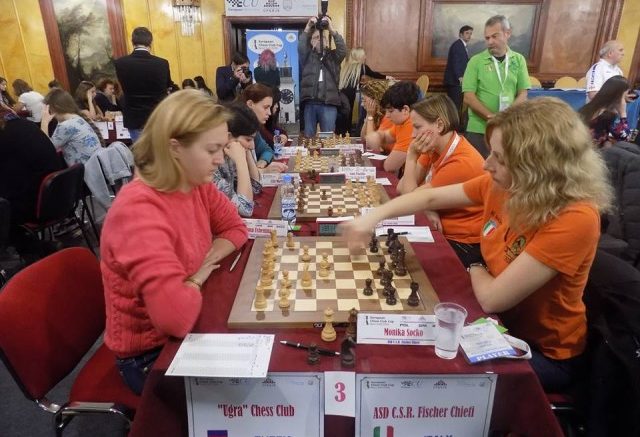 Tra le 14 squadre della sezione femminile è presente l’ASD Circolo Scacchi R. Fischer Chieti, Campione d’Italia in carica da ben 7 anni consecutivi. La squadra teatina si presenta al via con le stesse atlete che hanno conquistato il titolo tricolore: la 38enne polacca Monika Socko, GM (Grande Maestro) e n. 40 del mondo, la MI (Maestro Internazionale) italo-russa Olga Zimina (n. 86 del mondo, 34 anni), la 18enne Gaia Paolillo, Maestro Fide, e la teatina Eugenia Di Primio (31 anni, candidato Mestro). La manifestazione, iniziata il 6 novembre scorso, si concluderà sabato.