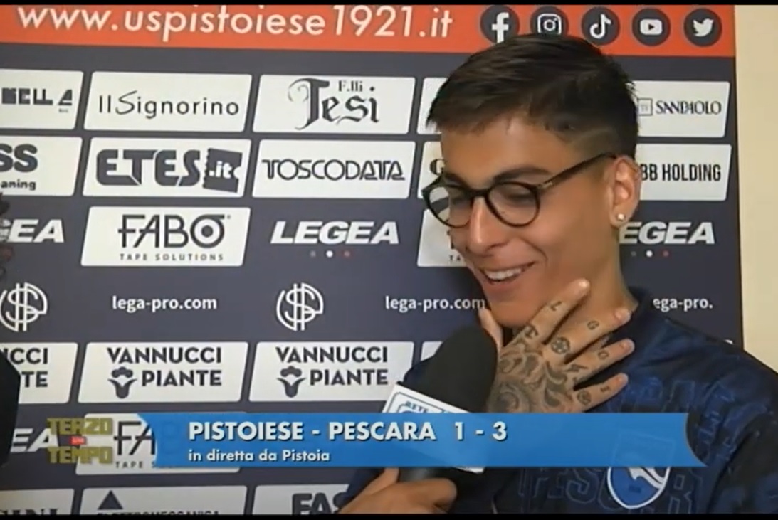 Serie C Pistoiese-Pescara 1-3, il commento del difensore biancazzurro che ha segnato il terzo gol: “Felice per la mia rete, abbiamo compiuto un altro passo avanti. Ci giochiamo tutto all’ultima giornata”. Il centrocampista Pompetti: “La pubalgia? Ci devo convivere fino al termine della stagione, ma stringerò i denti”.