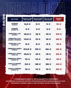 Anche quest’anno L’Aquila 1927 lancia la “Corsa al biglietto”, una conveniente campagna sconti che offre la possibilità di acquistare al prezzo più basso il tagliando d’ingresso per le gare casalinghe.