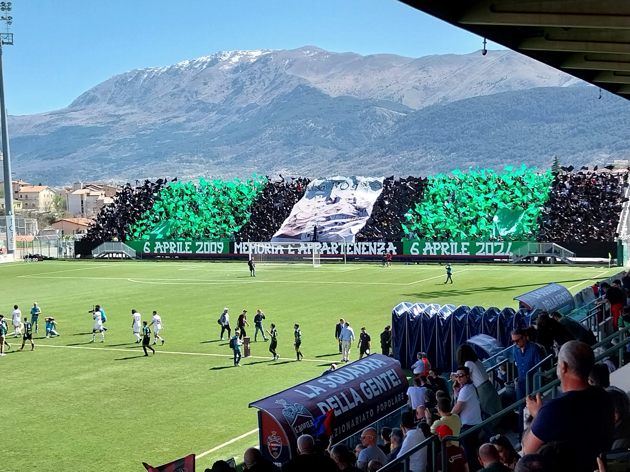 22′ s.t. GOL L’AQUILA! Ripartenza sulla fascia sinistra di un imprendibile Giuliodori, cross rasoterra che Sbardella devia in scivolata nella propria porta.