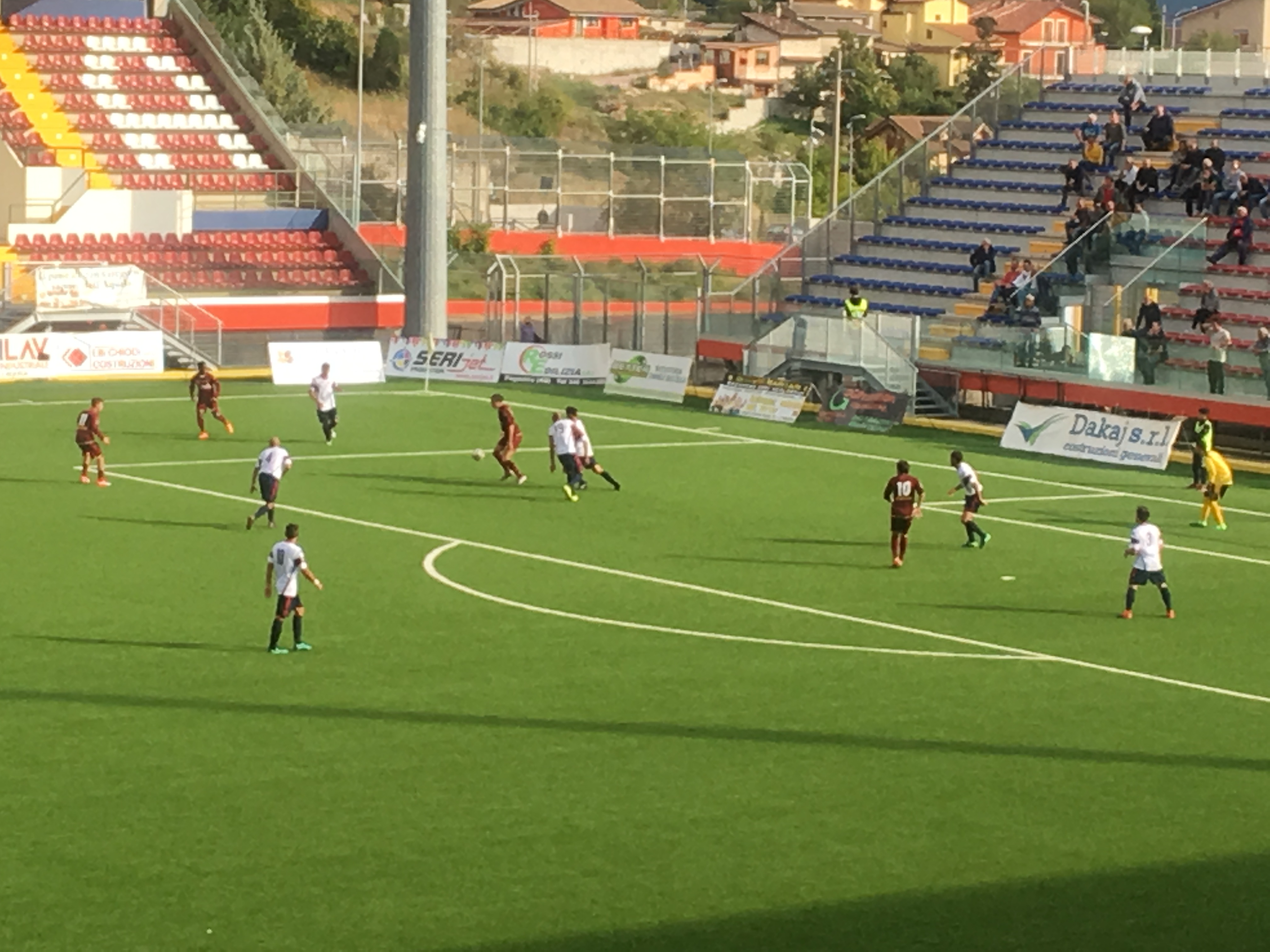 Grande risposta sul campo dell’Aquila che supera 2-1 l’Agnonese e si rilancia in classifica in barba alle questioni societarie. Ospiti ben messi in campo pronti ad andare in superiorità dopo aver recuperato palla nel primo tempo ma rossoblu con più qualità, imprecisi nei primi 45′ ma pronti a sfruttare super Valenti nella ripresa per un uno due micidiale partito sempre dal piede dell’esterno. La cronaca. 6′ Corsa di Valenti e sinistro potente. Palla alta. 12′ Marra pennella, Padovani sciupa da due passi. Ma è off side. 15′ cross basso di D’Aversa, L’Aquila salva con qualche difficoltà. 17′ Grande giocata dei rossoblu: Padovani, Marra, Sieno: gran sinistro out di un soffio. 33′ Padovani ha la palla buona in area ma calcia malissimo da ottima posizione. Dentro subito Ruci per Brenci ad inizio ripresa, L’Aquila spinge, Occasionissima al minuto 11. Sieno cross perfetto, sinistro a botta sicura di Valenti out di un soffio. Ma l’esterno aquilano si è acceso: 13′ gran sinistro. Faiella salva. Sugli sviluppi Boldrini messo giù. Rigore e gol dello stesso Boldrini. 24′ Raddoppio rossoblu. Pressione si Fabrizi punizione di Valenti che pennella un arcobaleno per il tocco vincente di Pupeschi :2-0. Squillo dell’Agnonese con Pejic che di destro al 34′ sfiora il palo. 47′ Santoro riaccende le speranze con un tocco da due passi ma arriva il triplice fischio che regala tre punti fondamentali. Applausi anche per l’Agnosese, ben messa in campo e con un Margarita da categoria superiore. Nota a margine. Battistini in panchina con la maglia neroverde. Un cuore grande così.