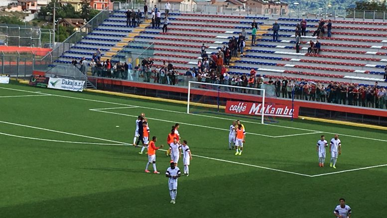 Troppa la differenza tra L’Aquila e i Nerostellati: finisce 3-0 per i rossoblu padroni del campo nei primi 45′ ma leziosi e a tratti superficiali nella ripresa. Gli ospiti da applausi per volontà e spirito di abnegazione nel prima parte della ripresa ma per mantenere la categoria occorre un sostanzioso intervento sul mercato. Pochi spettatori: continua la protesta della tifoseria organizzata rossoblu. 3 4 3 per L’Aquila, 4 3 3 per i Nerostellati che partono bene al 6′ : Da azione d’angolo batti e ribatti in area. L’Aquila è in affanno ma il pericolo è scampato. Steri e compagni diventano padroni del campo, 11′ Valenti, gran destro. Palla alta di un soffio; 14′ tiro corsa di Boldrini deviato in angolo; 16′ Valenti fa tutto da solo. Sinistro centrale18′ Marra, gran cross per Sieno. Nerostellati salvi in angolo. Sugli sviluppi arriva il vantaggio. Valenti pennella e Cafiero di testa fa 1-0. Non c’è partita: troppa la differenza tecnica tra i due organici, 24′ Valenti crossa, Boldrini sfiora e leva il pallone dal destro di Padovani che era tutto solo davanti al portiere. Sussulto ospite al 29′. Bruni , gran tiro. Alto 30′ Valenti per Padovani che viene contrato. Brenci a botta sicura. Out 33′ Raddoppio delL’Aquila: Boldrini per Sieno: inserimento perfetto e tiro ribattuto. Padovani : ribattuto. Terzo tentativo vincente di Valenti . 37 Padovani per Sieno cross lungo. Valenti di sinistro. Parente è attento 41′ Boldrini in corsa controllo e tiro. Out di un soffio; 44′ Valenti – Boldrini : sinistro deviato in angolo. Ripresa: irritante e leziosa L’Aquila, tanta buona volontà da parte dei Nerostellati. 12 Bruni evita Sieno e calcia bene. Palo pieno 24′ Terzo gol dell’Aquila : Ruci appena entrato innesca Valenti, palla perfetta per Boldrini che deposita nella porta vuota 30′ Sinistro di Valenti. Alto di un soffio 32′ Ponticelli appena entrato falcia Buscè. Rosso diretto. Non c’è altro da aggiungere: per L’Aquila tre punti facili facili e un’altrettanto facile tirata d’orecchie per la superficialità del secondo tempo; per i Nerostellati la consapevolezza che per essere protagonisti nel campionato occorre rinforzare l’organico.