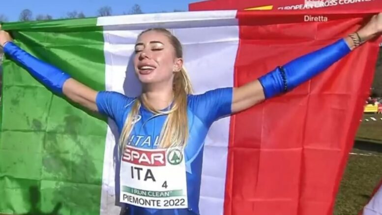 Primo oro dell’Italia agli Europei di cross ospitati in Piemonte con l’abruzzese Gaia Sabbatini nella staffetta mista 4x 1,5 km